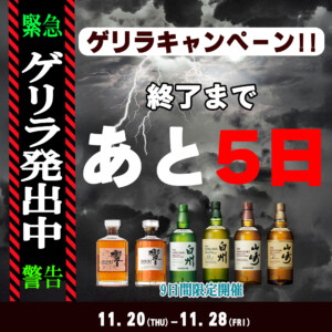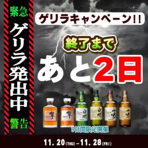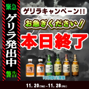 2025.11.27 お知らせ【緊急】いよいよ本日11/28(金)終了!!大好評開催中【ゲリラ発出中🔥!!】 9日間限定!! 数量限定!! 当店指定全6銘柄 ゲリラキャンペーン🐵✨ -