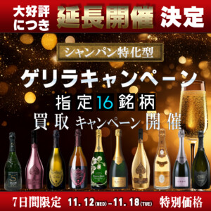 2025.11.11 お知らせ緊急延長開催【シャンパン特化型】ゲリラキャンペーン!!7日間限定!! 数量限定!!当店指定全16銘柄 🐵✨2025.11.12 -