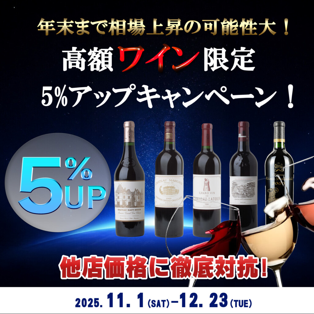【高額ワイン限定】5%アップキャンペーン開催!年末まで相場上昇の可能性大!他店徹底対抗中!