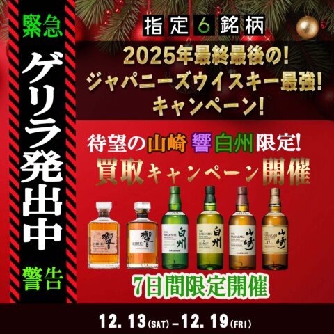 ~全6銘柄!! サントリー山崎・響・白州 6銘柄 待望のゲリラキャンペーン開催!!全店舗同時開催🐵✨~